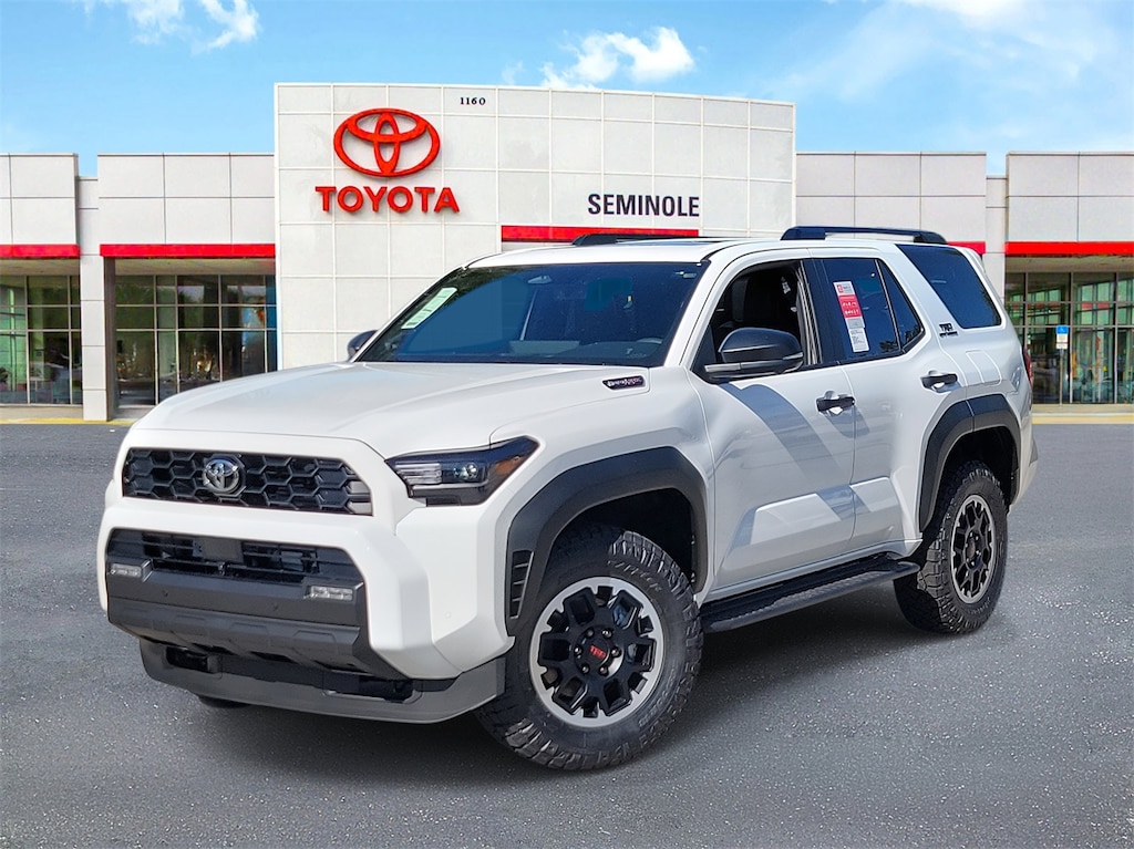 - Black honeycomb-style grille, mirror caps, door handles, and overfenders color-keyed rear spoiler black 'TRD OFF ROAD' and '4RUNNER' badges